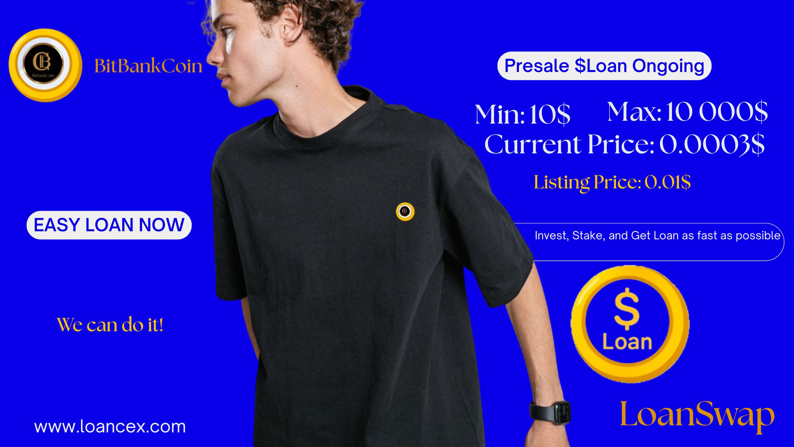 Trading of $Loan will be opened to all holders apart from 2026.12.24 at 0.01$. LoanSwap ($Loan) is the community token of LoanCEX. This token is deployed to motivate BitBankCoin community to keep as long as possible their $BBC until moon.